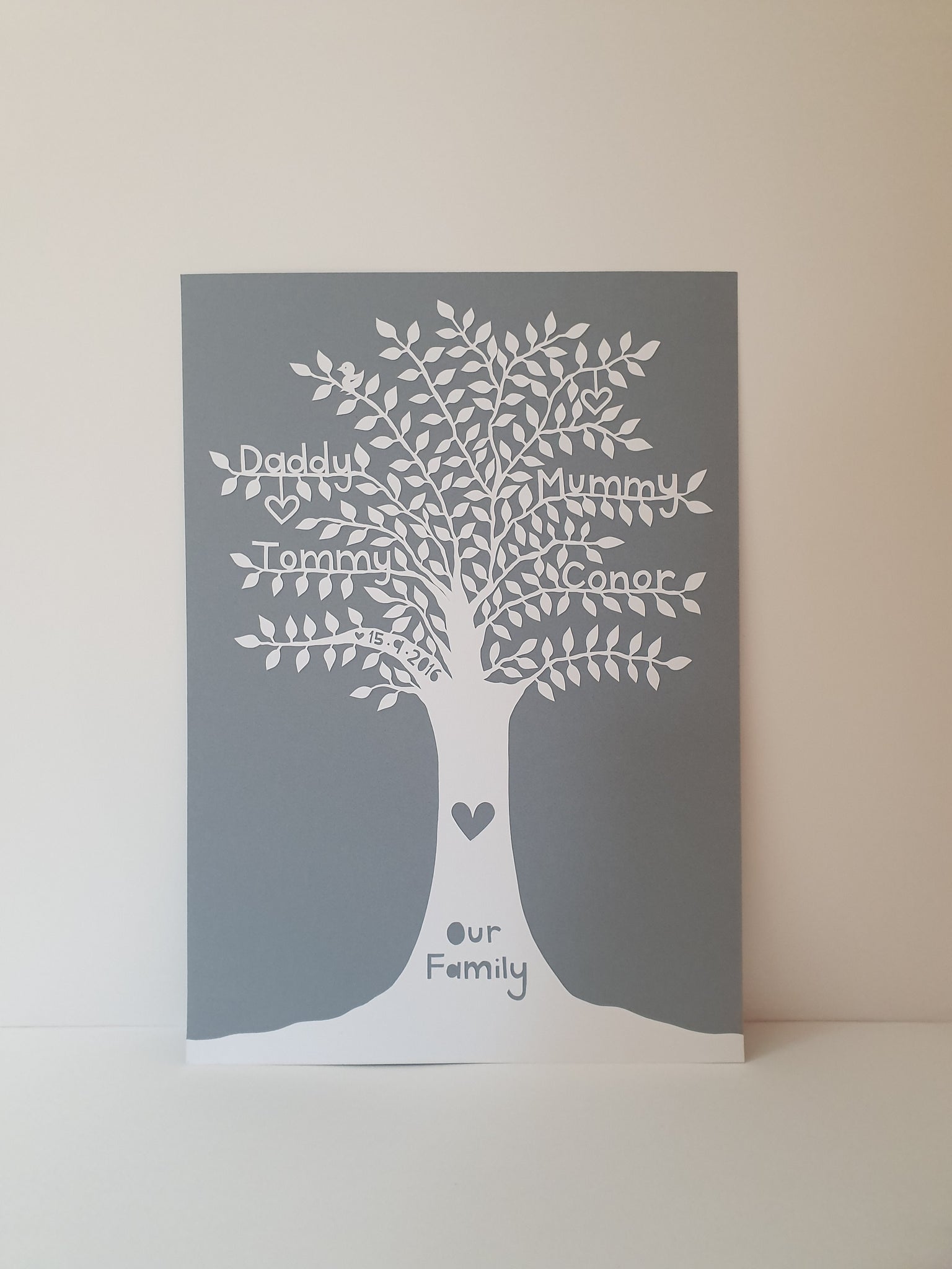 Tree trunk is finished off with a little heart and 'Our Family' both of which are optional extras.. please state if you don't want these on the papercut.