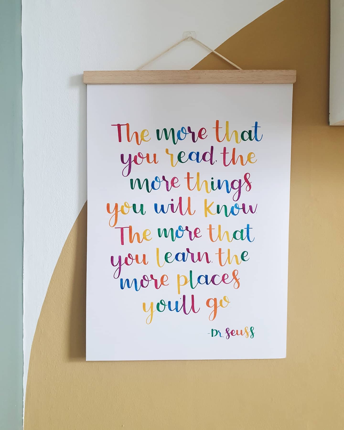 Custom Rainbow watercolour quote. On thick white textured card with rainbow coloured lettering.
