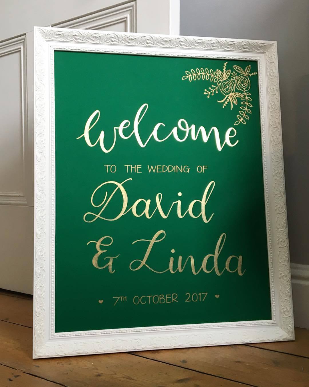 Available in black, gold, silver or copper lettering on a backdrop colour of your choice. Please leave the required colours (lettering & background) in the notes section at the checkout also including the names and date required. Most background colours and can be sourced.